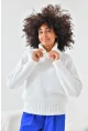 Beyaz Balıkçı Yaka Oversize Triko Kazak
