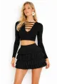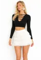 Beyaz Kat Kat Volanlı Şort Etek – Yüksek Bel, Feminen Mini Tasarım
