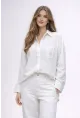 Kadın Bel Formlu Gömlek – Düğmeli Yarım Kol Şık Gömlek Beyaz