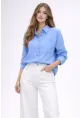 Mavi Çizgili Jakar Kumaş Oversize Gömlek