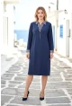 Çizgi Detaylı Fermuarlı Yaka Lacivert Midi Elbise