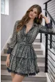 Dantel Dokulu Kat Kat Mini Elbise – Kemer Detaylı Şifon Görünüm