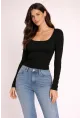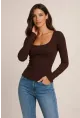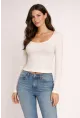 Ekru Kare Yaka Uzun Kollu Basic Bluz – Esnek Kumaş Günlük Şık Kadın Bluz