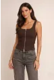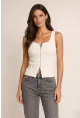 Fermuarlı Sıfır Kol Bluz Ekru