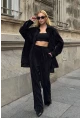 Gömlek ve Palazzo Pantolon Dokuma Alt Üst Takım Siyah