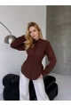 Kadın Bel Büzgülü Uzun Kollu Kahve Gömlek