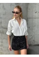 Göz alıcı şıklığı ve konforu bir arada sunan Işıltılı Payetli Şortlu Mini Etek, özel günlerden gece kombinlerine kadar stilinizi öne çıkarır. Tamamı payetli kumaştan üretilen bu etek, iç kısmındaki şort detayı sayesinde rahat ve güvenli bir kullanım sağlar. Mini boyu ile feminen bir siluet oluştururken, yüksek bel duruşu vücut hatlarını zarif şekilde vurgular.