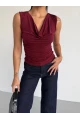 Düğmeli Yelek Model Crop Bluz Bordo