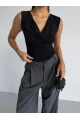 Dalgıç Kumaş Aksesuarlı Boyundan Geçmeli Bluz