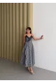 Kadın Ekose Dantelli Sırt Gipeli Elbise Mavi