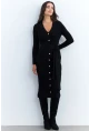 Kadın Ekru Düğme Detaylı Kuşaklı Midi Elbise MŞ1