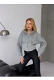 Kadın Gri Fermuarlı Hoodie Sweatshirt