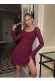 Kadın Askılı Bordo Deri Mini Elbise