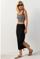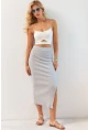 Normal bel kesimi ile gün boyu rahat bir kullanım sunar; Midi boyu sayesinde hem şık hem de pratik bir görünüm sağlar; Düz deseniyle sade ve zamansız bir stil yaratır; Örme kumaş yapısı, esneklik ve konforlu bir deneyim sunar; Kaşkorse dokuma tipi, vücut hatlarını nazikçe sararak feminen bir siluet oluşturur; Günlük kullanım için idealdir; rahatlığı ve şıklığı bir arada sunar; Tüm yaş gruplarına hitap eden tasarımıyla geniş bir kullanıcı yelpazesine sahiptir; İç etikette yer alan materyal bileşeni bilgisi, ürünün kalitesini ve içeriğini detaylıca incelemenize olanak tanır;