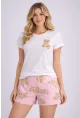 Kadın Kısa Kollu Pijama Takımı Şortlu Yazlık Rahat Kalıp Ev Giyim