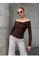 Kadın Kayık Yaka Yarasa Kol Yakası Troklu Lycralı Penye Bluz