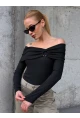 Kadın Bel Detay Kayık Yaka Uzun Kol Siyah Bluz