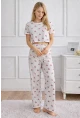 Kadın Beyaz Kiraz Desenli Alt Üst Pijama Takımı - Ev Giyimi
