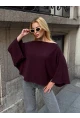 Kadın Yarasa Kol Panço Bluz Bordo