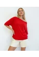 Şık ve rahat tasarımıyla öne çıkan kayık yaka kırmızı bluz, günlük ve şık kombinleriniz için ideal bir parçadır. Oversize kesimi ve dökümlü yapısı sayesinde gün boyu konfor sağlarken, omuz detayı ile feminen ve modern bir görünüm sunar. Hafif ve akışkan kumaşı ile özellikle yaz ve bahar aylarında keyifli bir kullanım sağlar.
