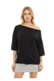 Kayık Yaka Oversize Siyah Bluz