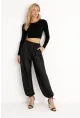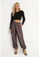 Saten Dokulu Lastik Paça Detaylı Yüksek Bel Bol Pantolon