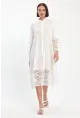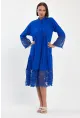 Siyah Hakim Yaka Düğmeli Tül Detaylı Viskon Elbise
