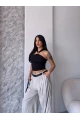Önü Deri Arkası Triko Kolsuz Bluz Vizon