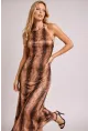Boyundan Bağlamalı Sırt Dekolte Tasarım Elbise